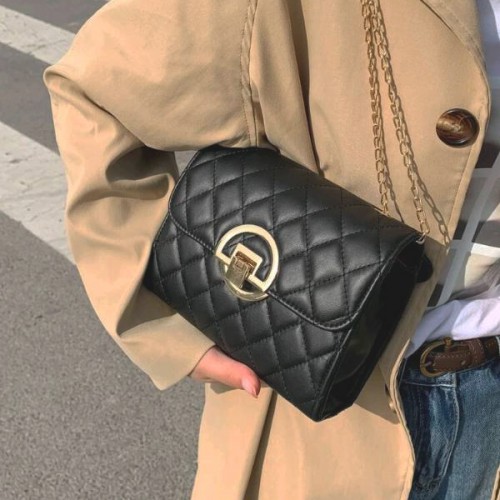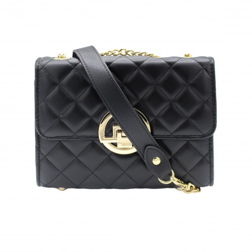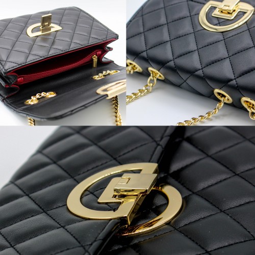 Bolsa de couro com corrente e detalhe dourado 22x15x8 cm