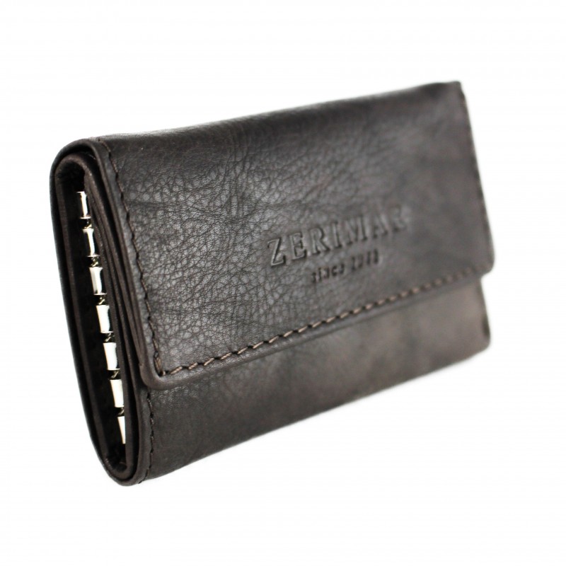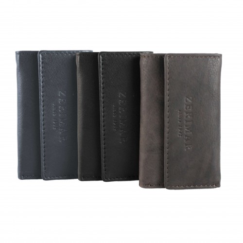 Porta-chaves em couro com bolso com zíper 10x7 cm