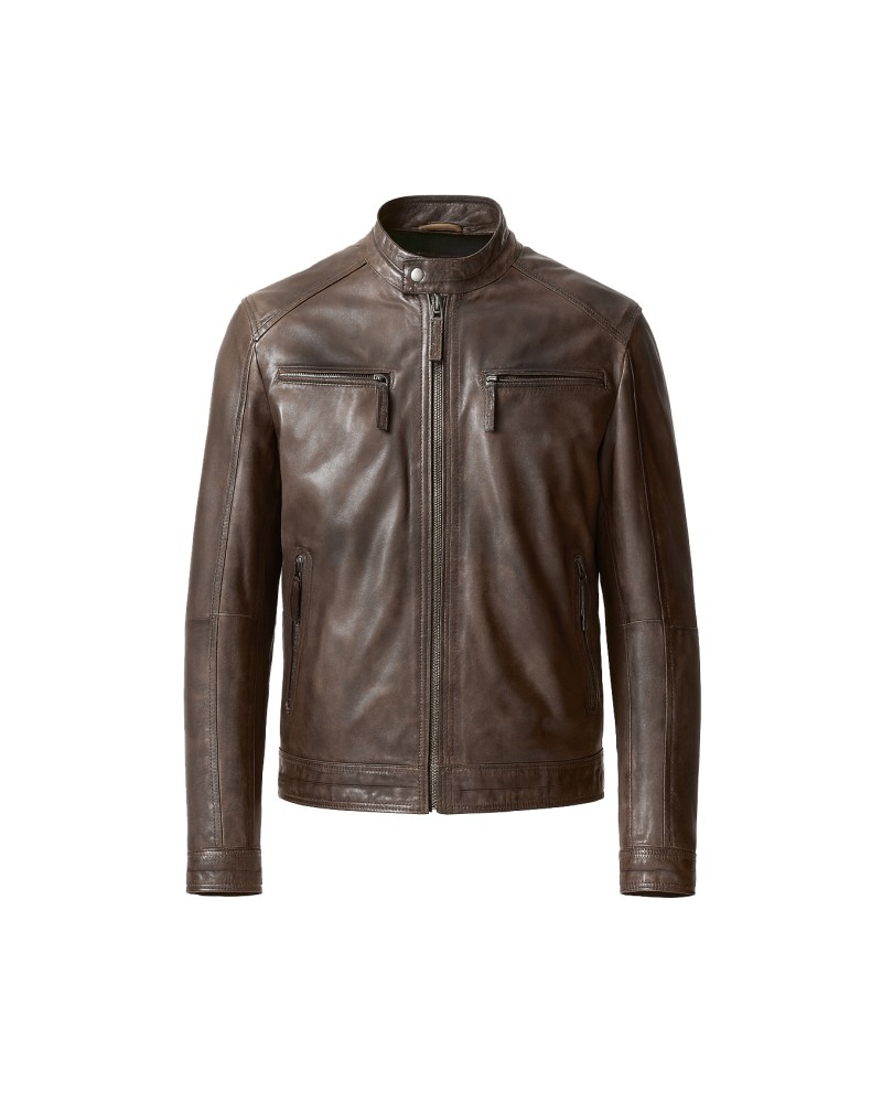 Jaqueta de couro com zíper modelo CHOCOLATE