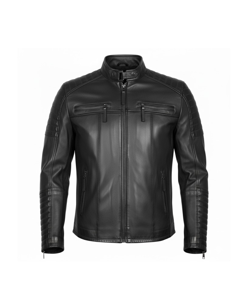Jaqueta de couro com detalhe em relevo modelo NAVAR