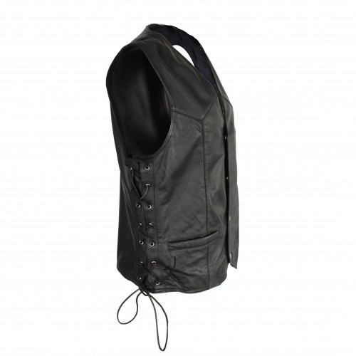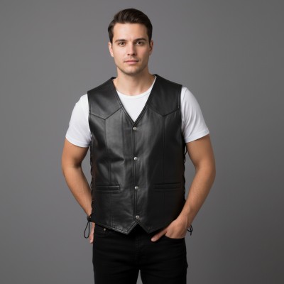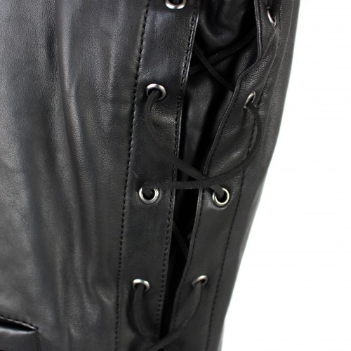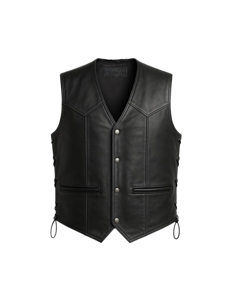 Colete de couro com bolsos e atacadores laterais