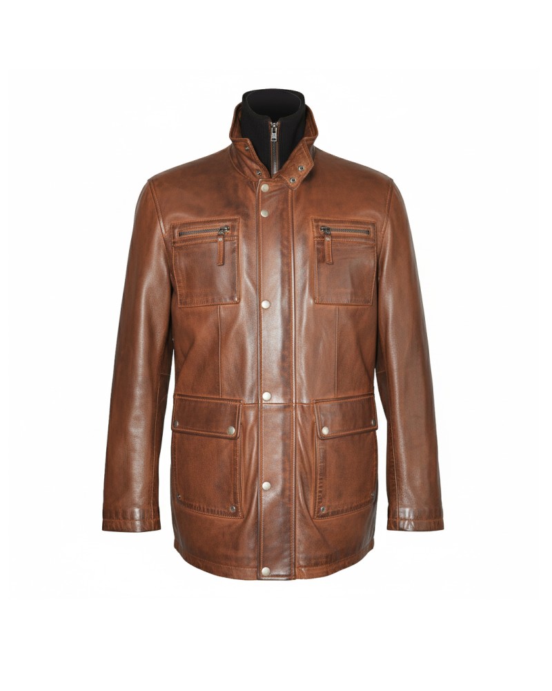 Jaqueta de couro com zíper duplo removível MESSY