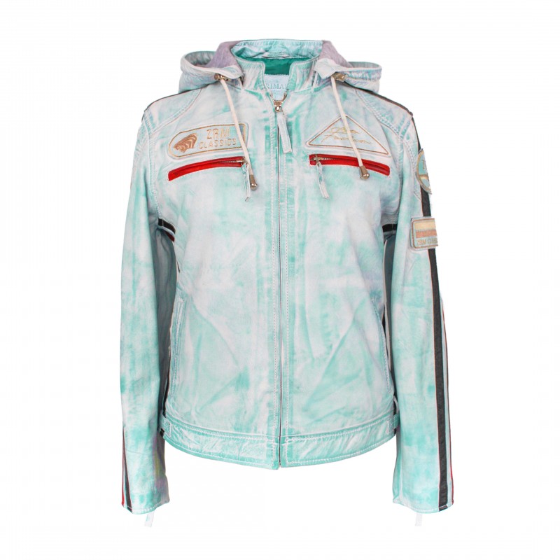 Jaqueta de couro com remendos e capuz removível BOLLWOM