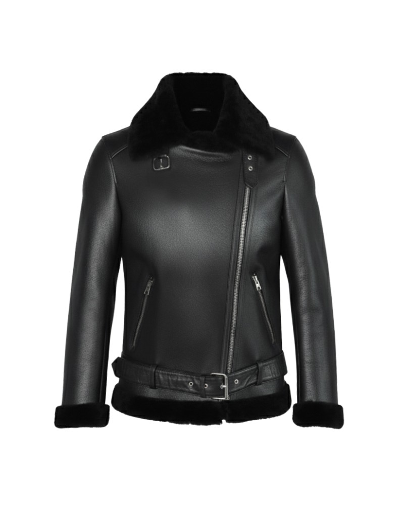 Jaqueta de pele de cordeiro double face com zíper CHOPPER