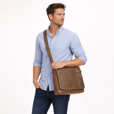 Pasta de couro com alça de ombro 37x30x8 cm CLUB