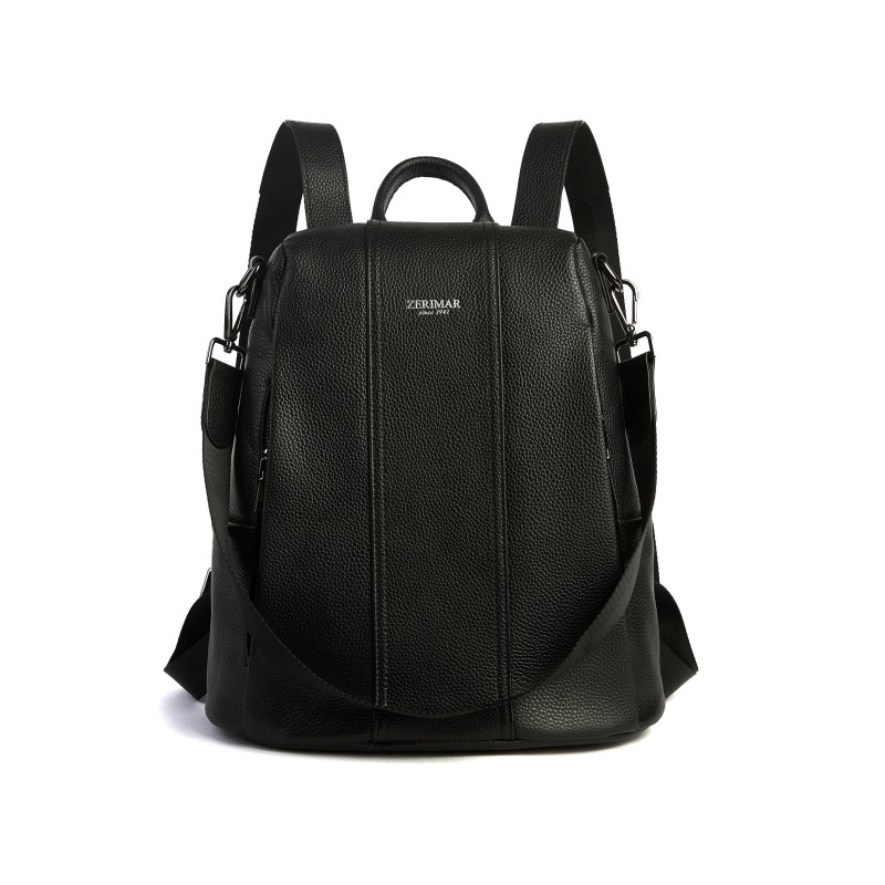 Mochila de couro com zíperes 24x34x16 cm CACAO